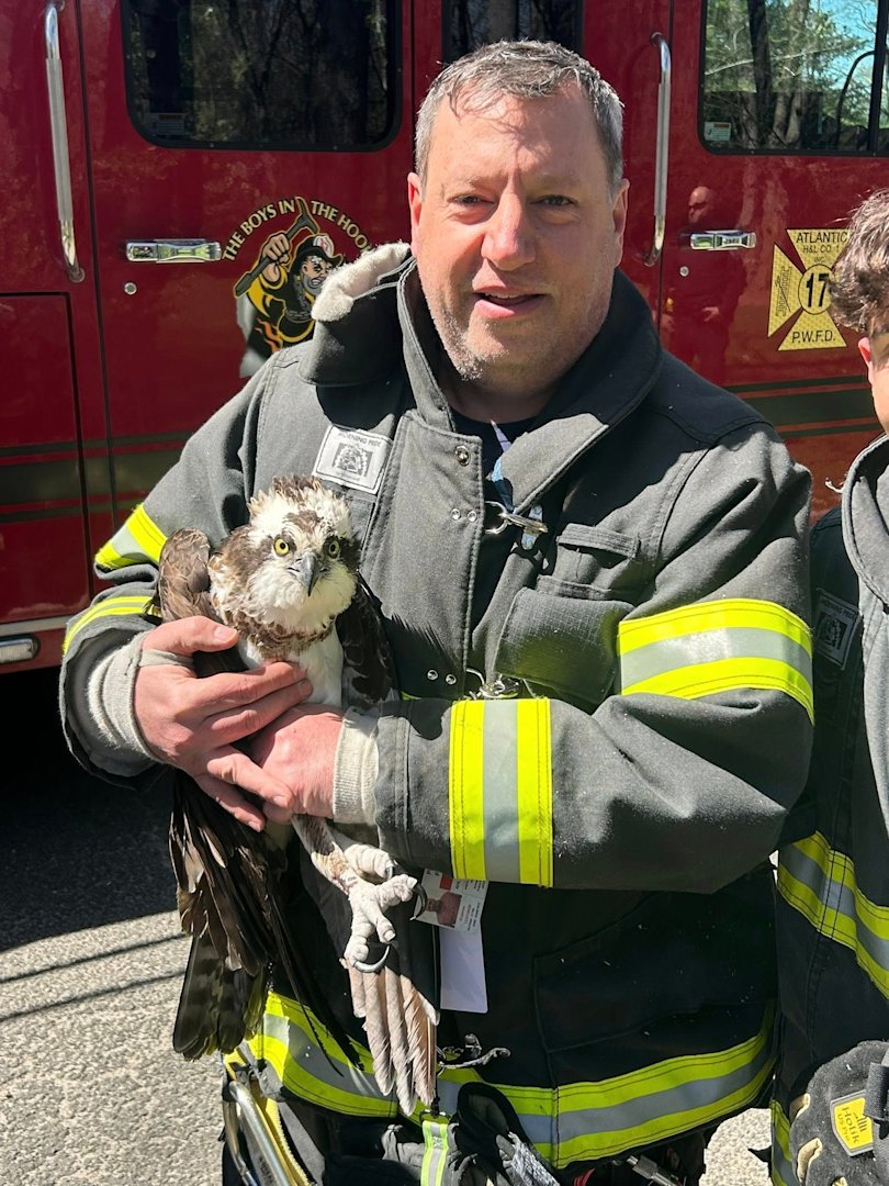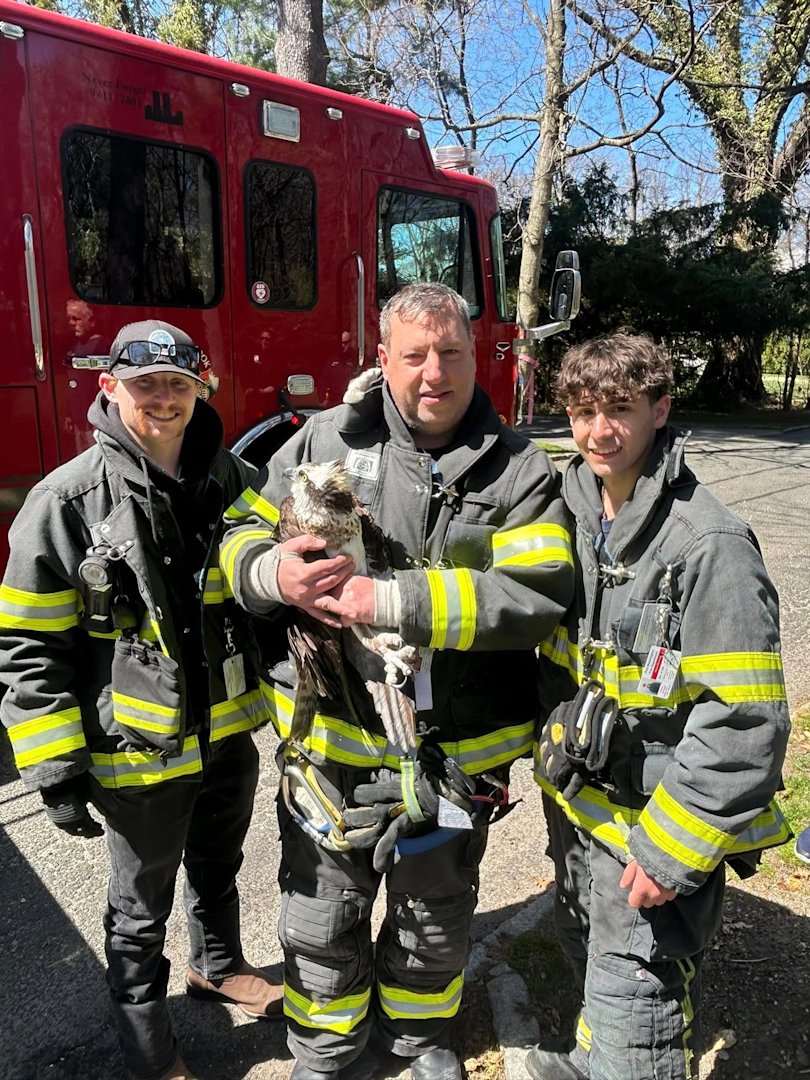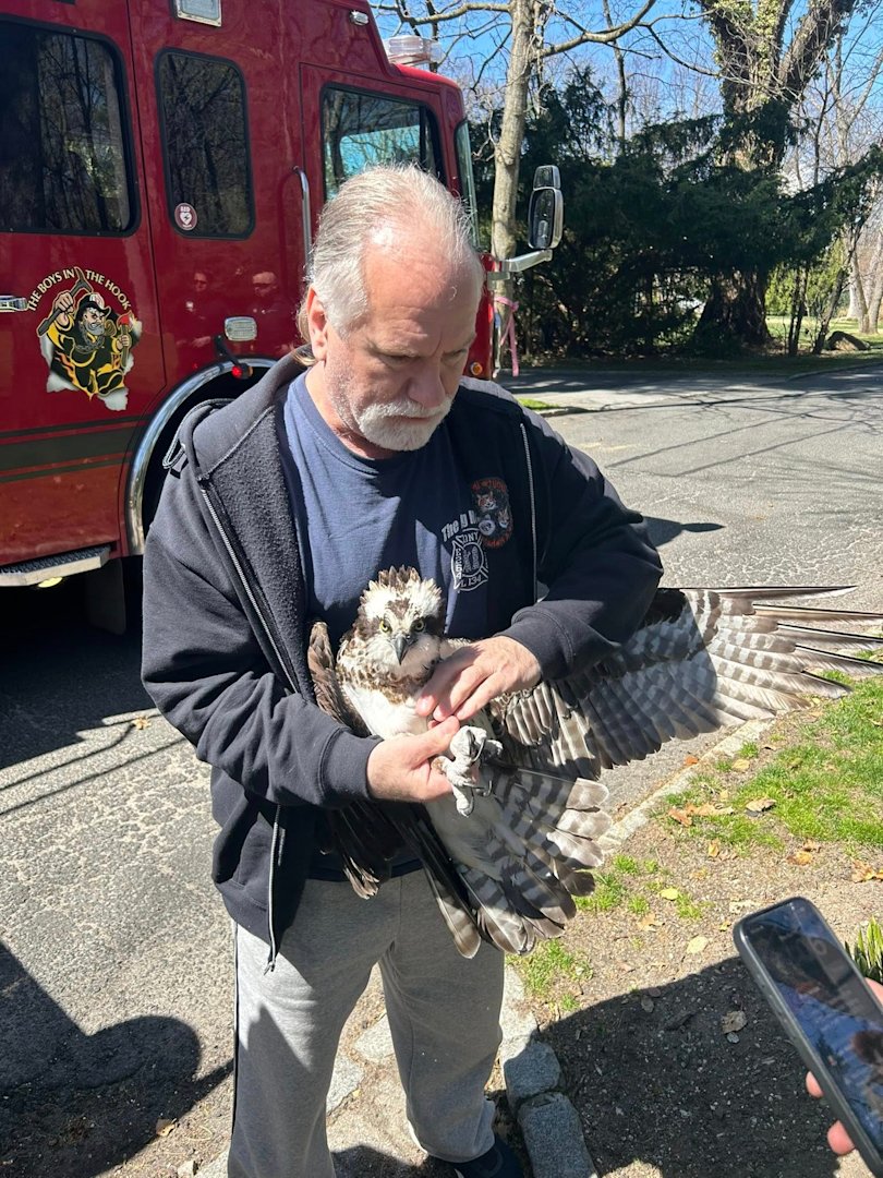 A female osprey will soon be flying high again after being rescued Thursday by the Port Washington Fire Department in the Village of Sands Point.